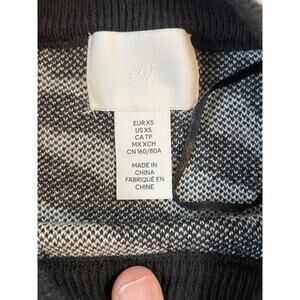 H&M Cropped Sweater Womens XS Arty Black Zebra Knit Flare Sleeves Y2K Mallcore