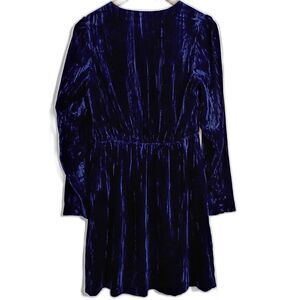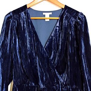 HM Crushed Velvet Faux Wrap Dress Dark Blue 10 Velvet Buttons V Neck Long Sleeve