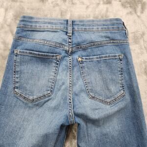 H&M &DENIM Jeans Womens 2 Blue High Wiast Flare Leg Raw Hem Stretch Denim Casual
