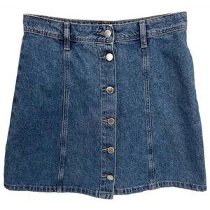 H&M DENIM SKIRT PANEL A-LINE BUTTON DOWN FRONT BLUE DENIM MINI SKIRT SIZE 10