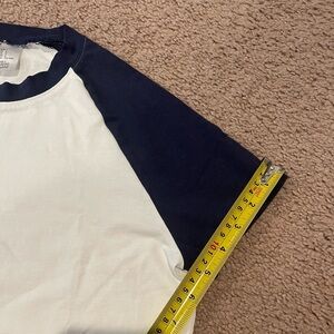 H&M DIVIDED (Junior) Basic CrewNeck Crop Top Tee, white/ blue color, size LARGE, cotton/ elastane material, made in Bangladesh. Size is smaller than the regular size. Preloved, in excellent condition.