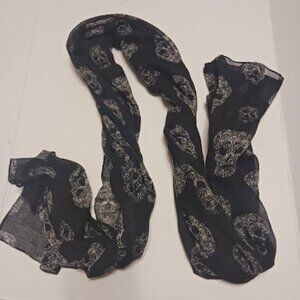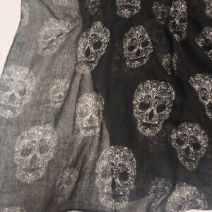 H&M DIVIDED Lightweight Scarf Shawl Black with White Skull Print, Used