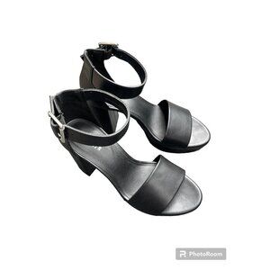 H&M DIVIDED Shoes Womens Size 6 (US)36 Black Faux Patent Leather Open Toe Buckle