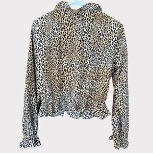 H&M DIVIDED Size 6 Leopard Animal Print Flounced Blouse Top Long Sleeve V-Neck
