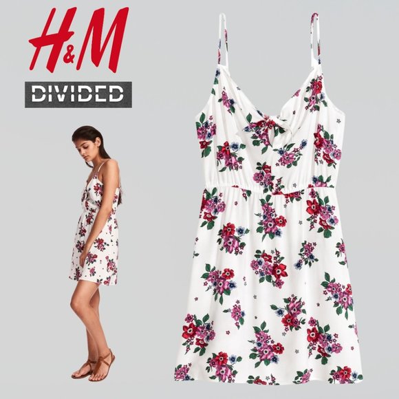 H&M DIVIDED White Floral Front Tie Detail V-Neck Sundress - Size 6
