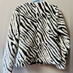 H&M DIVIDED ZEBRA PRINT OPEN FRONT FAUX FUR STATEMENT JACKET SIZE 10~NWT