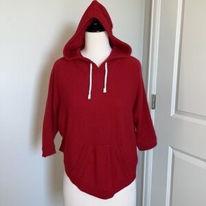Beautiful red hooded poncho relaxed fit sweater with front pocket