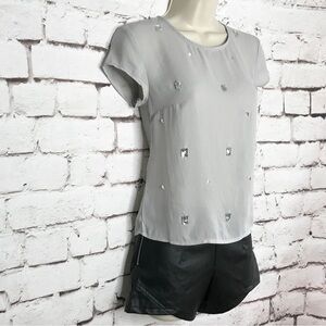 H&M DIVIDED sheer grey top with clear crystal embellishments short sleeve Size 2