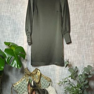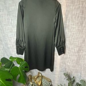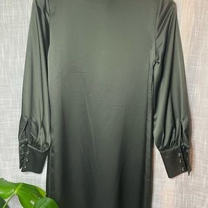 Knee length and a loose comfortable fit. Can stress it up with a belt, heels 👠