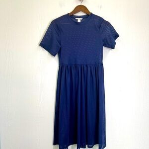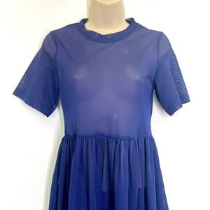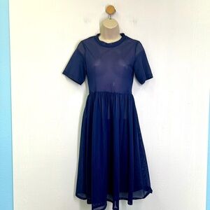H&M - Dark Blue Crewneck Mesh Short Sleeve See Thru Midi Dress Size 2
