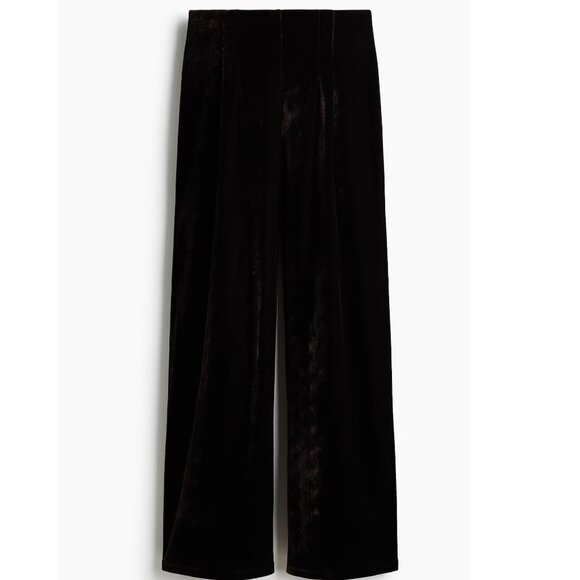 *New with Tags!* H&M Dark Brown Velour Velvet Pants. Pants in soft velour. High waist, elasticized waistband, and straight legs with pleats at front.