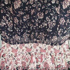 H&M Dark Floral Dress Black Red Tier Maxi Ruffle Long Sleeve Prairie