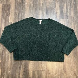 H&M Dark Green Crewneck Cropped Long Sleeves Relaxed Fit Knit Sweater Top Size M