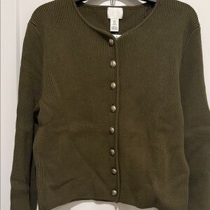 H&M Dark Green Rib Knit Cotton Cardigan Sweater