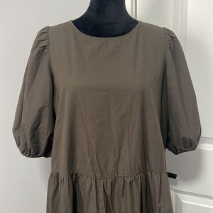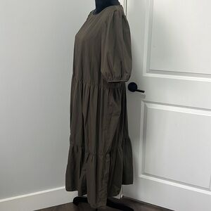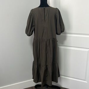 H&M Dark Khaki Green Puff Sleeve Tier MIDI Dress size Medium