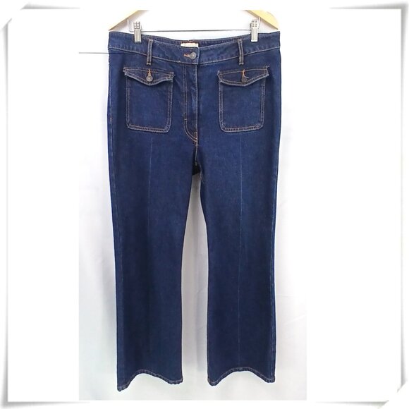 H&M Dark Wash Straight Wide Leg Short Petite Inseam Front Medium Rise Jeans EUC