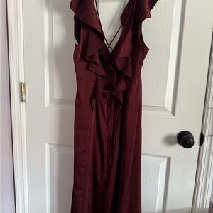 Chic backless dress with ruffle details. Perfect for elegant occasions.