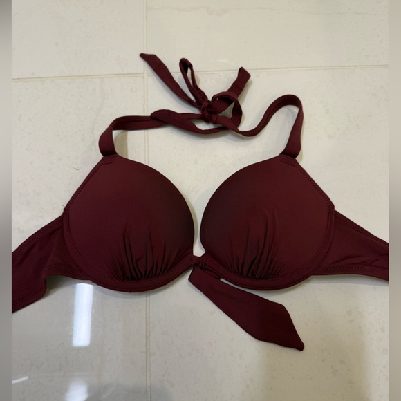 Elegant deep red bikini top by H&M. Perfect for a stylish beach look. Size 32B. Push up