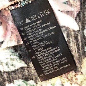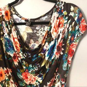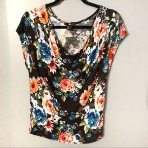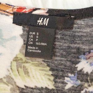 H&M Deep V Draped Short Sleeve Blouse Floral Top