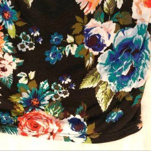Bright floral print on a black background shirt