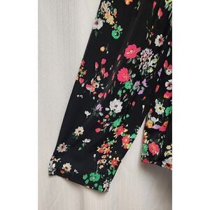 H&M Defined Shoulder Crew-Neck Long Sleeve Multicolor Black Floral Blouse Size L