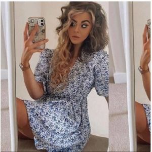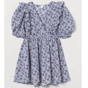 H&M Delicate Floral Cottegecore Puff Sleeve Flounce Trim Dress - M