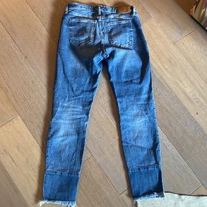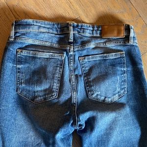 H&M L.O.G.G. Brand distressed skinny jeans Size 26 Have patchwork seams at leg for almost a two-tone effect Worn a couple times In great condition