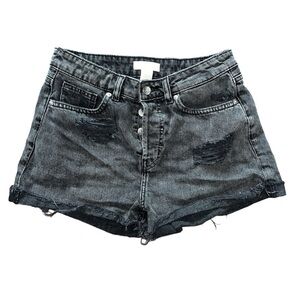 H&M Denim High Rise Distressed Cuff Cut Off Jean Shorts Summer Casual Black 6