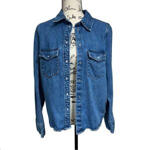 H&M Denim Pearl Snap Shirt Jacket, Small