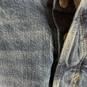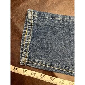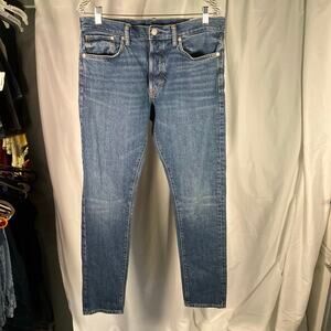 H&M &Denim Slim Straight Jeans Blue Stretch Mid Rise Size 32 Women’s Button Fly