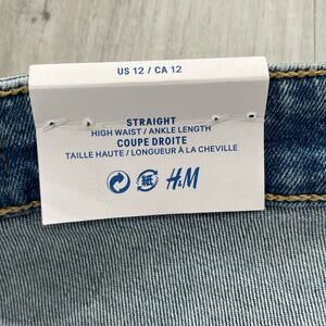 H&M &Denim Straight High Waist Ankle Length Light Wash Cotton Denim Jeans 12