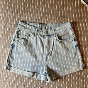 H&M &Denim Women's Size 10 High Waist Striped Denim Cuffed Jean Shorts