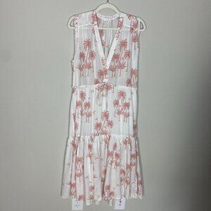 H&M Desmond & Dempsy Palm Tree Tropical Tiered Midi Dress Sleeveless Vacation