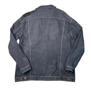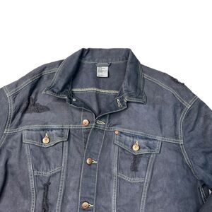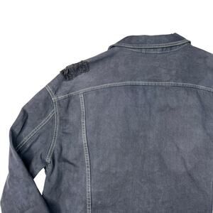 H&M Distressed Boyfriend Oversized Trucker Jacket Denim Navy Blue Womens 12
