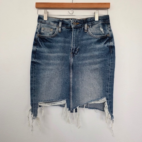 H&M Distressed Medium Wash Denim Mini Skirt - Size 4