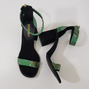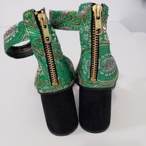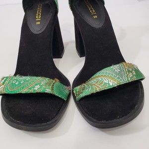 H&M Divided Asian-Inspired Open Toe Block Heels, Green, Size 38