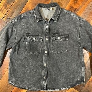 H&M Divided Black Acid Wash Denim Shirt Jacket Size S