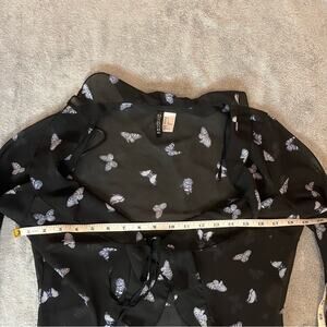 H&M Divided Black Blue Butterfly Sheer Flounce-Trimmed Chiffon Blouse Size Small