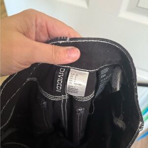 Trendy black cargo pants from H&M Divided with contrast white stitching and a straight-leg fit. Features multiple pockets, a button and zip closure, and durable 100% cotton fabric. Perfect for streetwear, casual outfits, or Y2K/utility-inspired looks.