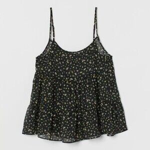 H&M Divided Black Ditsy Floral Flowy Baby Doll Tank Top
