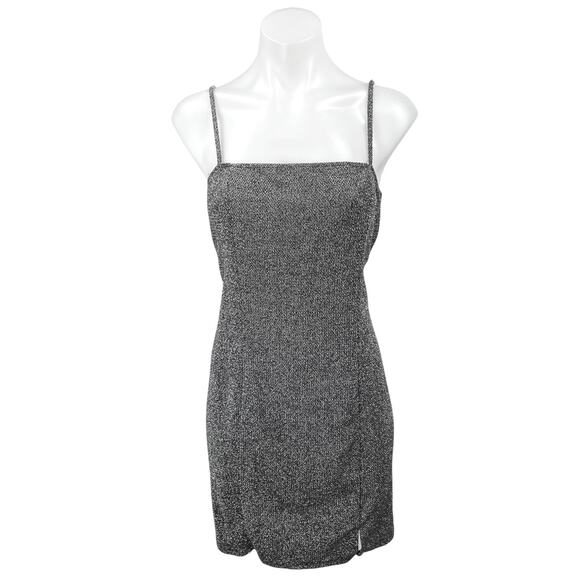 H&M Divided Black Metallic Sleeveless Cami Camisole Mini Bodycon Tank Dress L