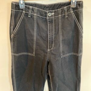 H&M Divided Black Pants White Contrast Stitch Womens Size 8 Twill Goth Punk