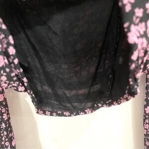 H&M Divided Black & Pink Floral Long Sleeve Draped Front Crop Top w/ Smocked Back - Large