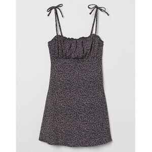H&M Divided Bow-Detail Jersey Dress - Size M - Black Green Ditsey Floral Mini