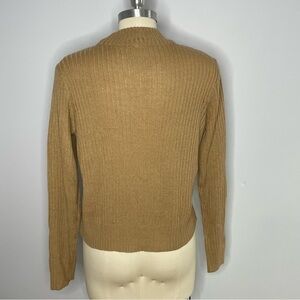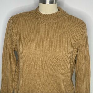 Perfect for layering! Light brown color. Mock turtleneck design. Long sleeves. Knit fabric. Ribbed fabric pattern for tons of stretch. This item has been worn and washed. In excellent condition! Perfect for the Fall! Also would be great for the office. Sweater weather is right around the corner!