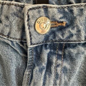 Vintage-inspired H&M Divided cargo jeans in a light wash denim. Features a mid rise, relaxed straight leg, utility-style flap pockets, and elastic cuffs.