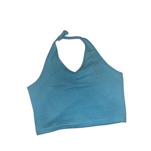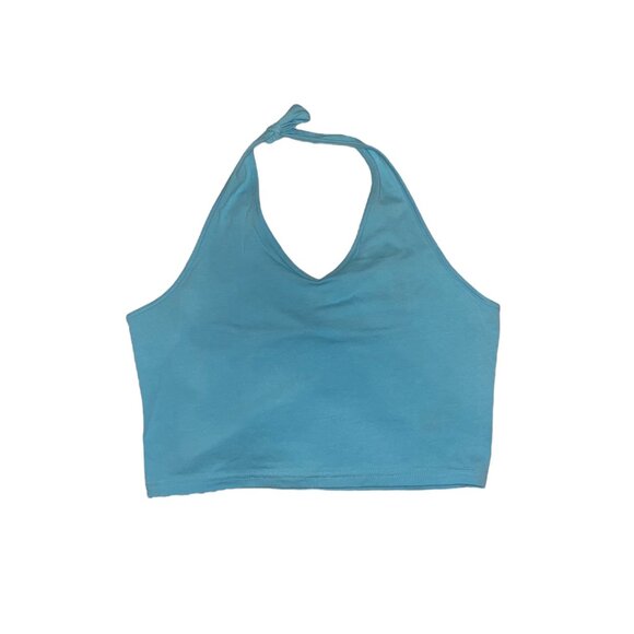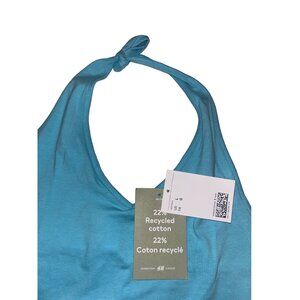 H&M Divided Crop Top Halter Neck Tie Cropped Recycled Blue Crop Halter Top L