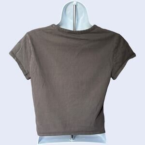 Minimalist cropped tee in washed gray with a boxy/baby-tee fit. Crew neck, soft jersey with a cotton feel. Modern basic; easy layering piece. Condition: Good.