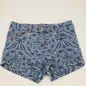 H&M Divided Damask blue ivory Print Denim Shorts US size 6 small