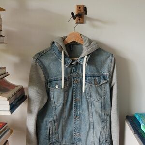 H&M Divided Denim Jacket with Grey Hoodie Sleeves (Men’s M)